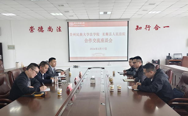 为深化院校合作,推动法学教育与司法实践融合发展,3月17日下午,贵州民族大学法学院与长顺县人民法院在法学院第三会议室召开合作交流座谈会。长顺县人民法院党组书记、院长郭孟,党组成员、政治部主任陈朝宇,政治部工作人员姚江飞,以及我院党委书记柏云兴、副教授马良全、办公室负责人刘凡参加座谈。会议由贵州民族大学法学院副院长刘伟琦教授主持。
